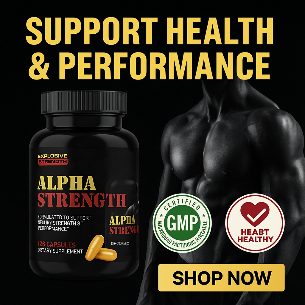 | Boost your vitality naturally with Alpha Strength â a premium testosterone support supplement designed to enhance male performance, heart health, and energy levels. This advanced formula helps increase stamina, sharpen mental clarity, and support healthy blood flow using scientifically backed, natural ingredients. Perfect for men over 40 seeking to reclaim their strength and confidence, Alpha Strength delivers proven results without harsh side effects. Feel younger, stronger, and more energizedânaturally.! |