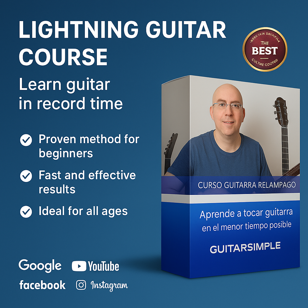 Spanish: Domina la guitarra rápidamente con el Curso Guitarra Relámpago: 70 videos cortos, 14 pistas musicales, acceso inmediato, y contenido en HD con audio profesional. Diseñado para principiantes absolutos, compatible con cualquier guitarra (acústica, eléctrica o clásica). Aprende desde cero, paso a paso, en orden lógico creado por un profesor experimentado. Ahorra tiempo, evita búsquedas dispersas y convierte tu práctica en habilidad real de forma ágil.! [View Page In English]