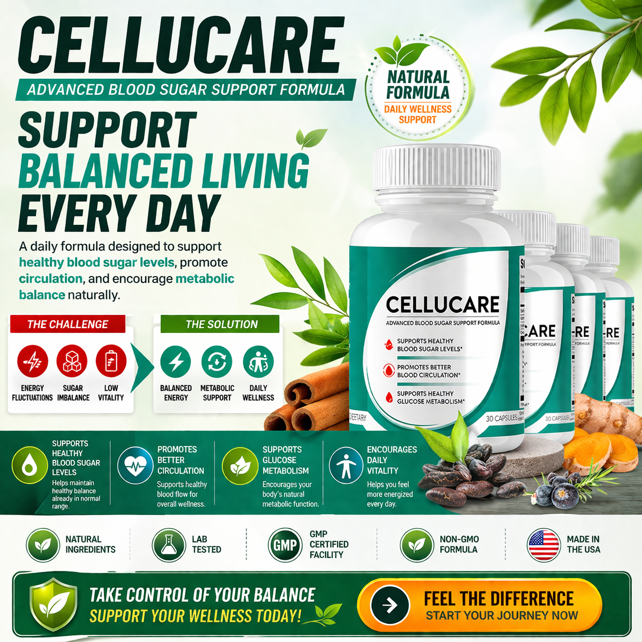 CelluCare Blood Support is a daily supplement for adults, especially 30+. It helps support glucose balance and energy. Also, it uses natural ingredients for simple use and steady results.