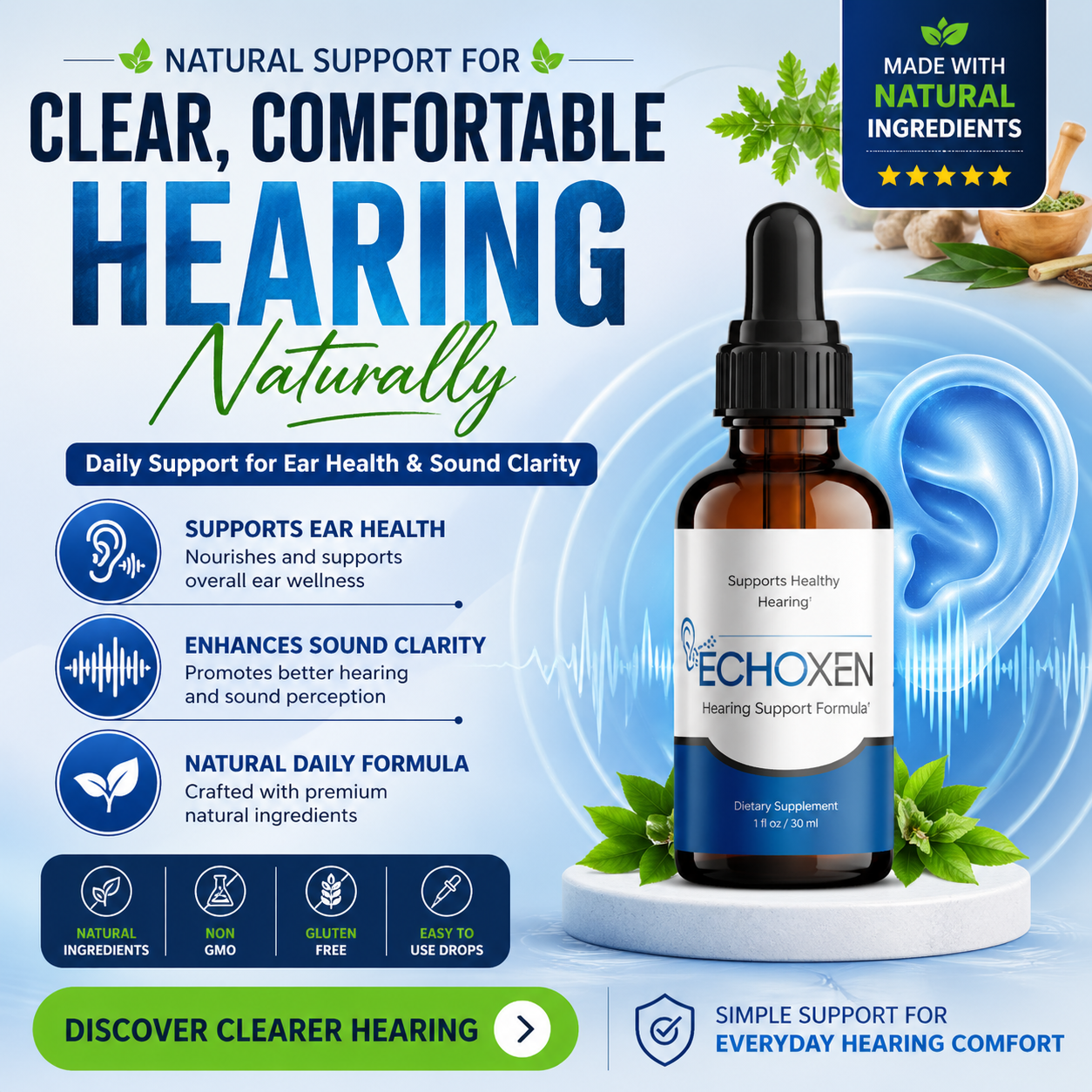 Echoxen Ear Health Aid: Natural Support for Better Hearing!