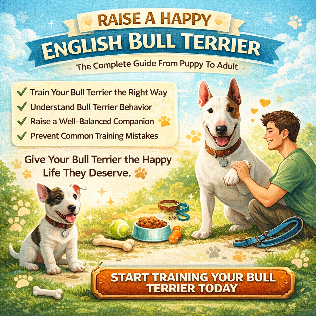 A digital eBook sharing real experiences and guidance on raising an English Bull Terrier from puppyhood through adulthood.