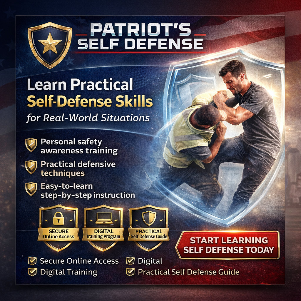 The Patriot Self Defense Guide is a digital training program for adults aged 18+ that teaches practical self-defense skills, situational awareness, and confidence-building strategies through step-by-step video lessons.