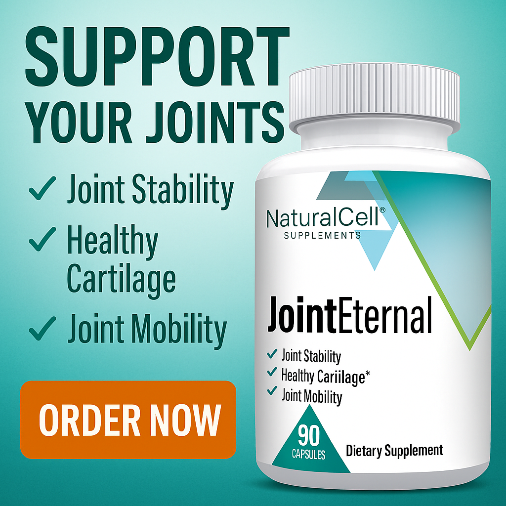 Say goodbye to discomfort and restore movement naturally with Joint Eternal — the advanced formula designed to support joint flexibility, enhance mobility, and ease inflammation. With its potent blend of natural ingredients like Turmeric, Boswellia, and Glucosamine, it helps protect cartilage and improve your overall joint health. Trusted by thousands, Joint Eternal is your daily solution for active, pain-free living.!