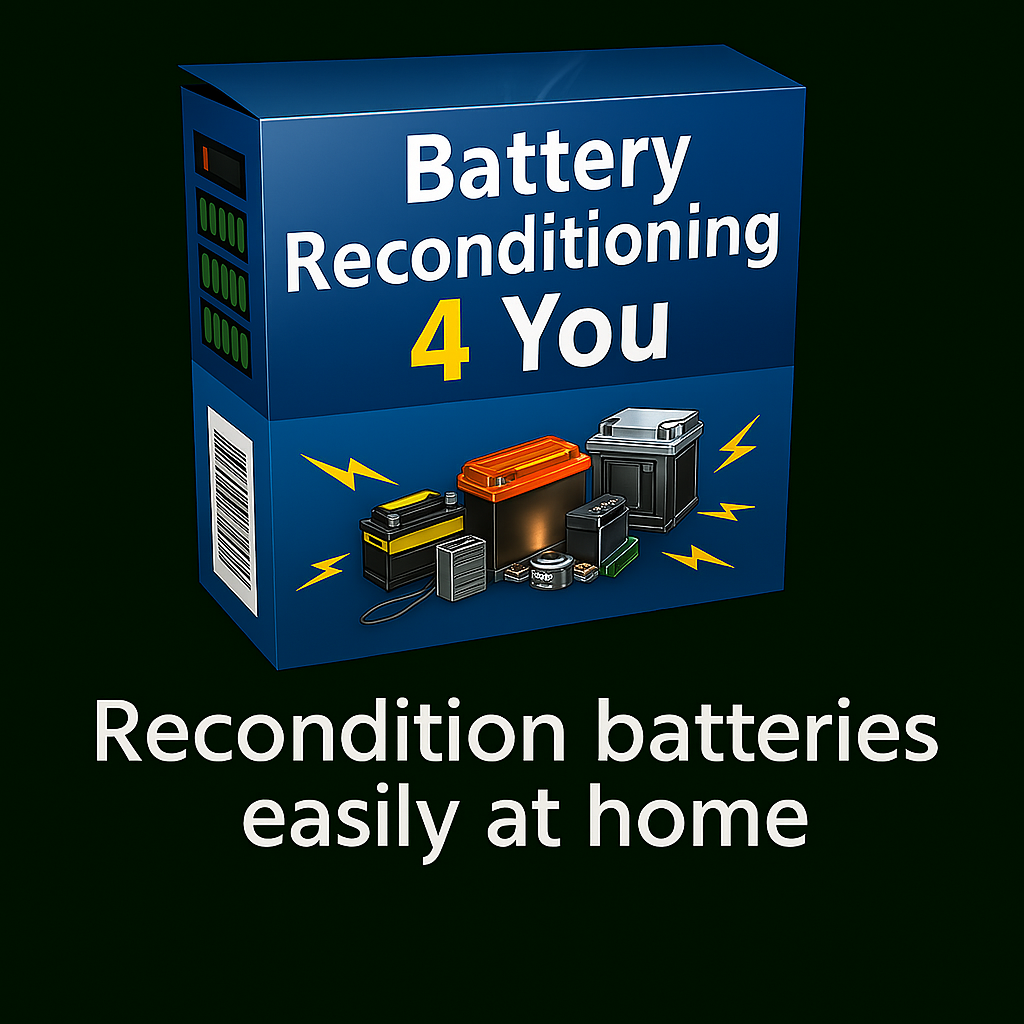 | Revive your old batteries with Battery Reconditioning 4 You™. This step-by-step system empowers you to restore dead batteries—from car and laptop to solar and AA—quickly, easily, and safely, with no prior experience. Save money, reduce waste, and even start a profitable side business by reconditioning batteries at home. Join thousands who’ve extended battery life and embraced sustainable living with this proven method.! |