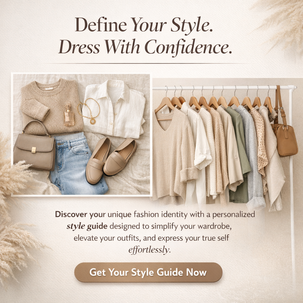 Tabby Spot Style Guide is a digital fashion guide for ages 18–45, helping users define personal style, organize wardrobes, and create outfits with confidence using simple steps.