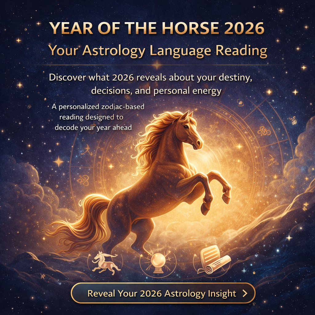 Unlock deep 2026 astrology insights with the Year of the Horse 2026 – Your Astrology Language Reading and discover what China’s Fire Horse year means for your path ahead. This Chinese zodiac forecast combines ancient wisdom with modern interpretation to reveal your personalized zodiac predictions, helping you harness fiery energy for love, career, and growth. Find direction, intuition, and clarity for a transformational year.!